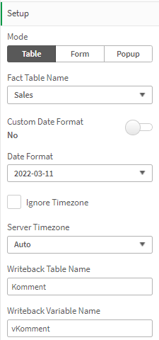 `Writeback Table Name:` The name of the QVDs that are stored. Ensure to name unique if you have multiple Komment objects in your app or different apps are storing QVDs to the same location.