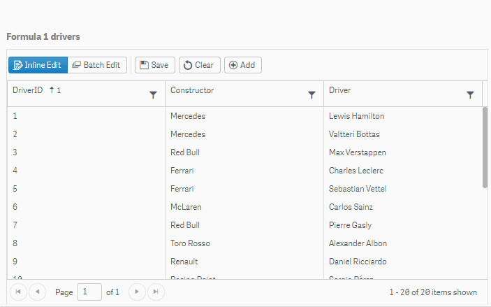 `Table Mode:` Here you enable the remove functionality by pressing `Batch Edit` => Select the records you want to remove => press `Edit` => press `Remove`